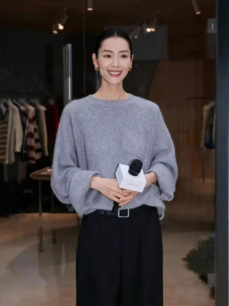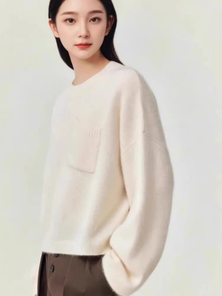 100% cashmere sweater women's crewneck loose thick sweater women's knitted bottom sweater new style