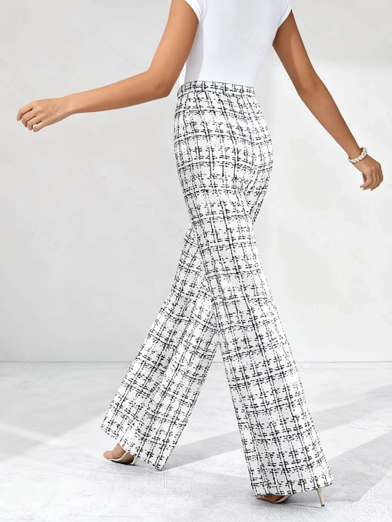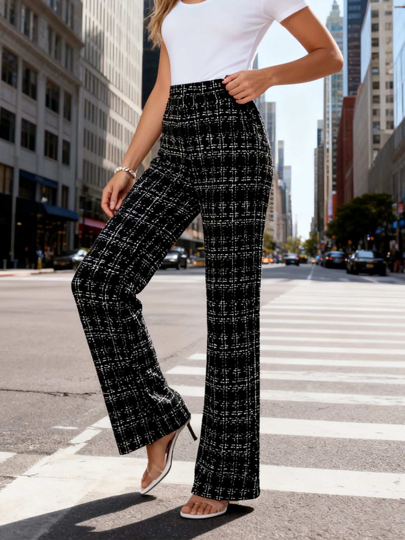 New Ladies Commute Fashionable Casual Plaid Print Straight Leg Trousers Versatile Simple Design Long Pants for Women