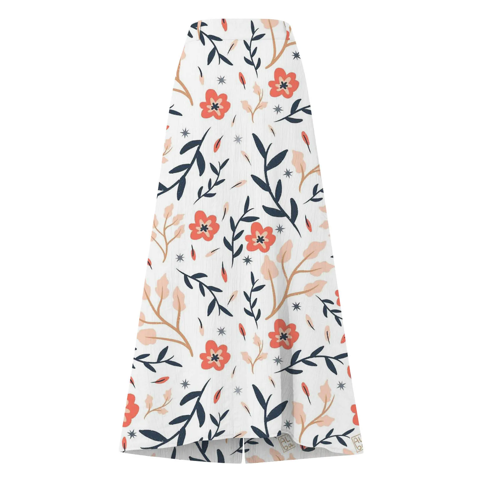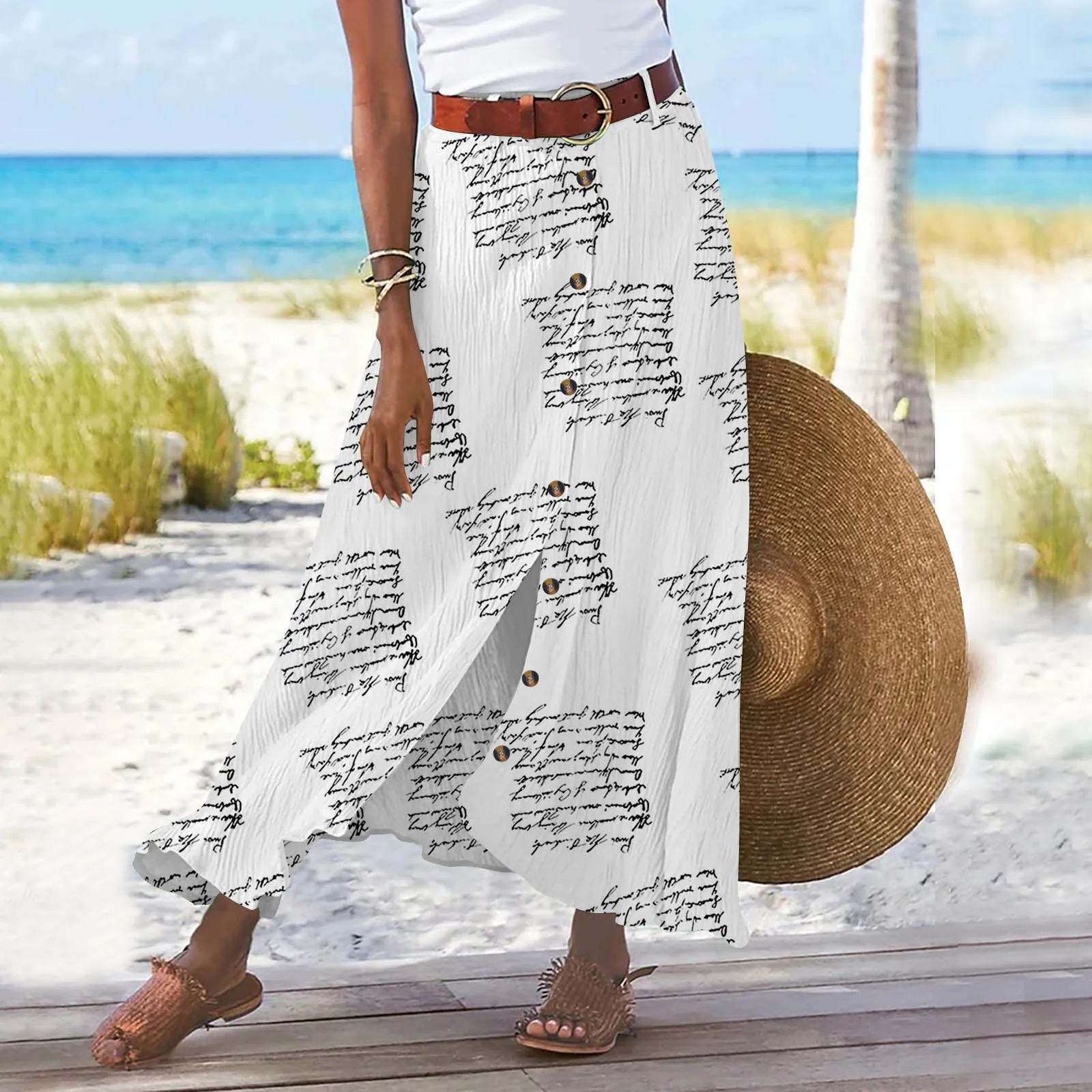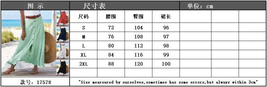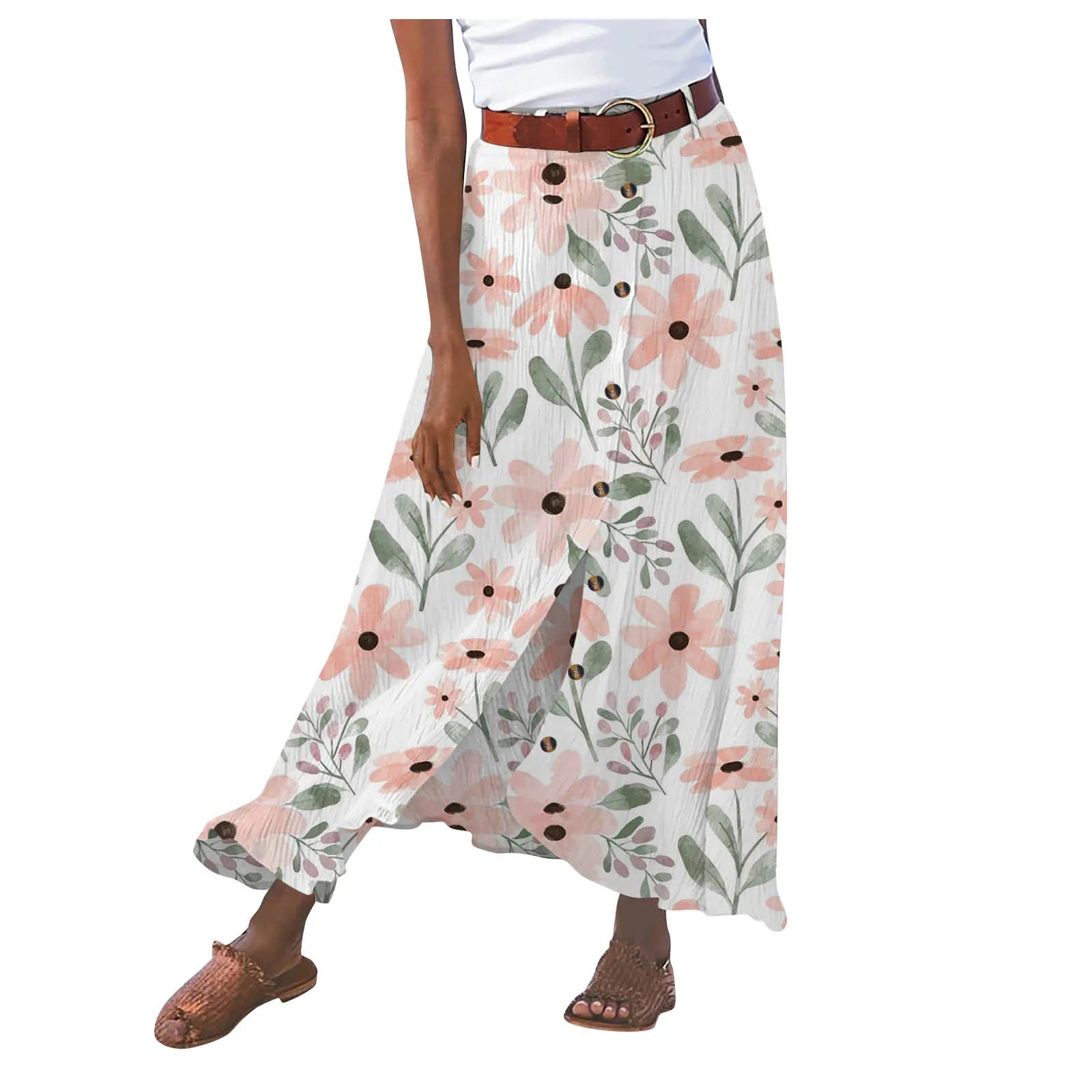 Summer Women's Skirt Cotton Linen Important Button Slit Flower Print Fashion Versatile Vacation Beach Midi Skirt