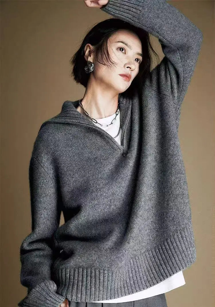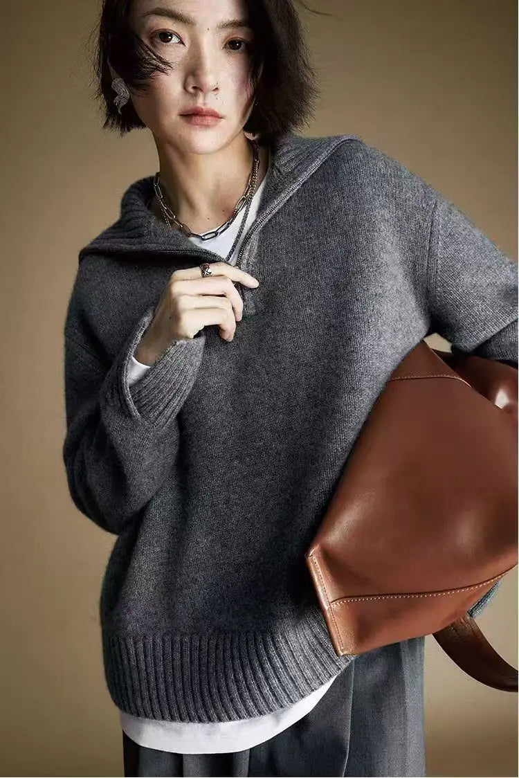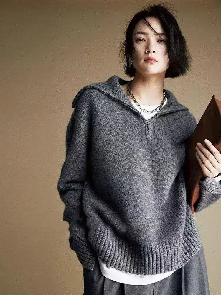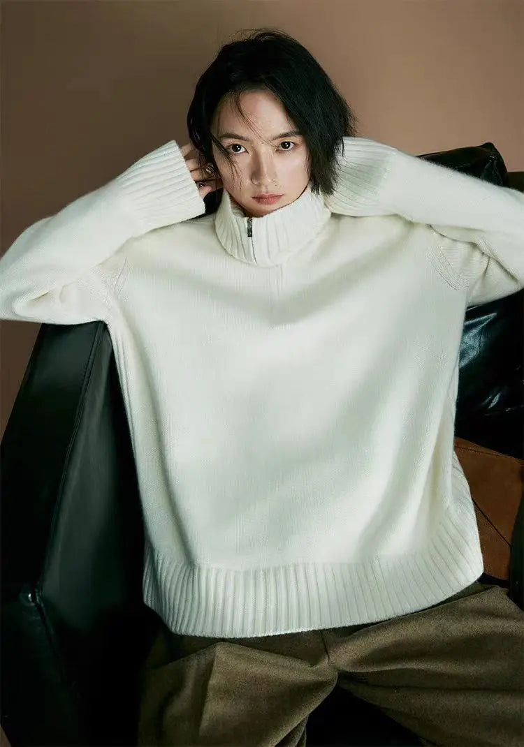 Women Merino Wool Sweater Half Zip Turtleneck Pullover Autumn Winter Casual Basic Knitwear Solid Color Regular Female Loose Tops